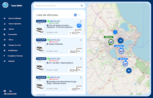 •	Suivi en temps réel de la flotte sur une carte géographique.