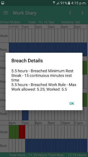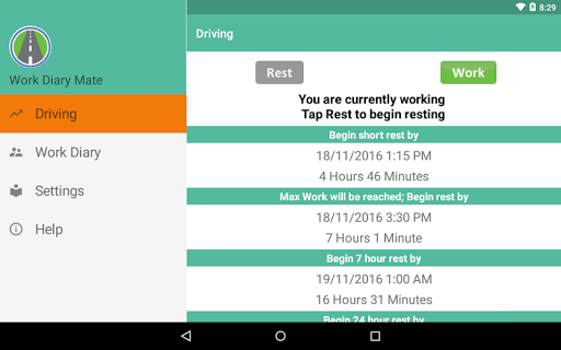 Work Diary Mate is the easiest and most intuitive work diary assistant and log book checker there is. It is based on the Australian National Driver Work Diary for Heavy Vehicles so you will know how to use it straight away. It has been designed with the truck drivers’ needs in mind and will take all the effort and guess work out of maintaining your work diary. Simply tap and swipe in the work or rest area on the work diary daily sheet and you will be automatically notified if a breach has occurred. Please note: This product is a Work Diary assistant, not an Electronic Work Diary (EWD). You still need to fill in your paper work diary if you use this product.