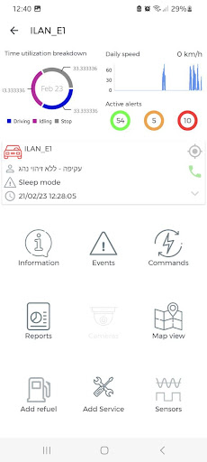 – View vehicle and driver information on line, including: current speed, odometer and GPS status