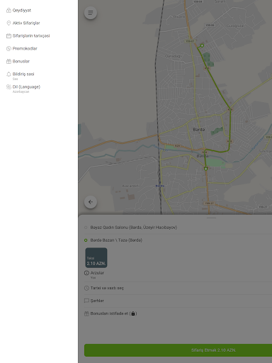 • yaxınlarınıza taksi sifariş etmək imkanı;