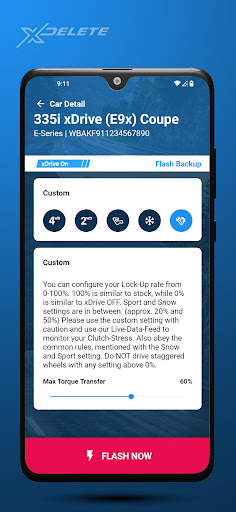 xDelete will enable you to switch between AWD, AWD Sport and RWD in your xDrive equipped car! Or go custom and change the power distribution with an easy slider!