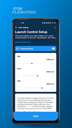 Adjust your shiftpoints, take-off behavior, Launch Control parameters and many more functions within seconds.