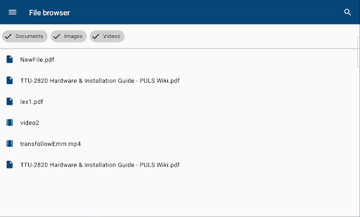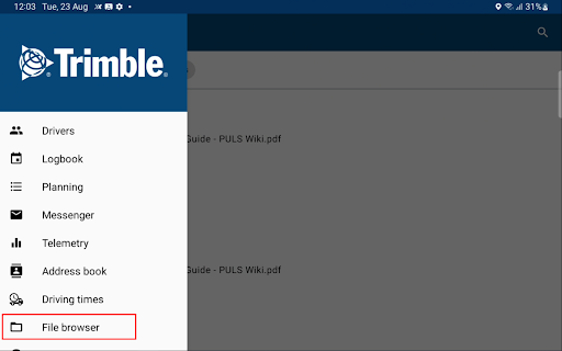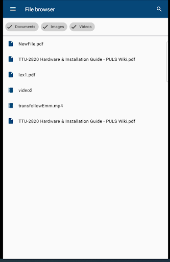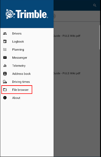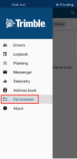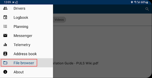 In the File browser, drivers can access company managed documents. They can filter on document type (documents, images or videos), search for specific documents and open different extension files (gif, png,pdf).