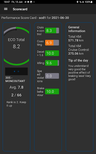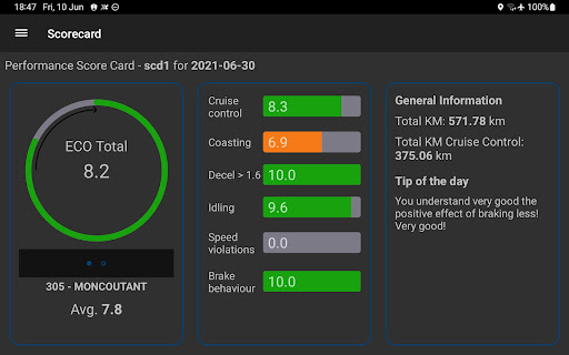 The Onboard Driver Scorecard gives drivers feedback on their daily performances and shows them their position in the overall ranking of drivers.