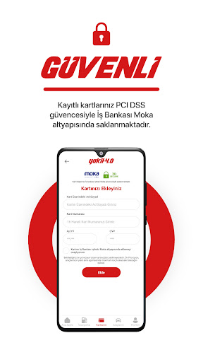 Yakıt 4.0 aracınızdan inmeden mobil uygulamanızla ödeme olanağı ile size maksimum güvenlik sağlar. Siz yakıt alımınızı yaptıktan sonra Yakıt 4.0, İş Bankası İştiraki Moka güvencesiyle tahsilatınızı gerçekleştirir. Tüm kart bilgileriniz ilgili yasalara uygun şekilde Moka altyapısında tutulmaktadır.