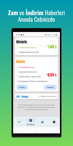 – Akaryakıt zam ve indirimlerle ilgili bildirimler alın.