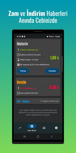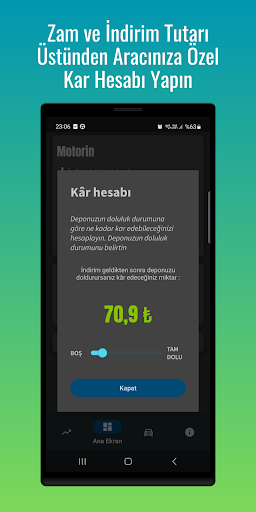 – Akaryakıt zammına veya indirimine ne kadar kaldığını görüntüleyin.