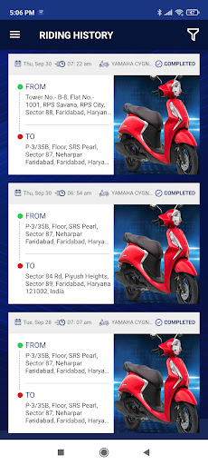 • Riding History – You can view individual trip details of every ride.