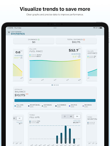 With our app, you can effortlessly monitor maintenance, fuel consumption, and other expenditures, receiving timely alerts about potential issues before they escalate. You can also evaluate your driving performance and benchmark it against others. Moreover, if you utilize your vehicle for deliveries or transportation services, our app enables you to manage your earnings and analyze their impact on your financial status. All of this comes wrapped in a sleek and intuitive interface.