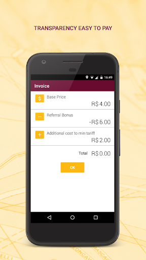 Choose your place of origin and the destination. You’ll see who your driver is and all his information (car model and license’s plate). Also, monitor his way to your location.