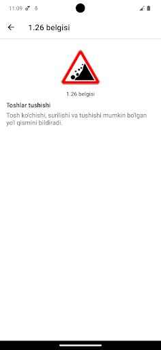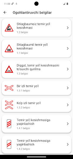 – Yo’l belgilari: tavsifga ega bo’lgan joriy yo’l belgilari ro’yxati