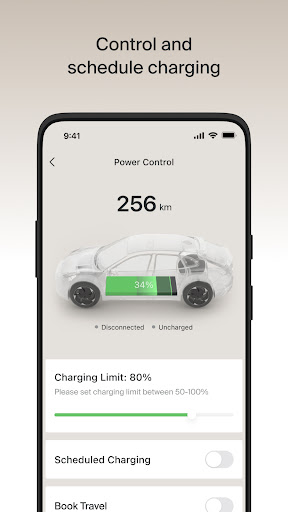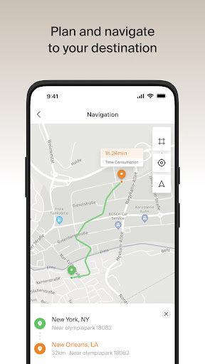 These functionalities allow you to check the map, check car location, plan and navigate to your destination, receive last mile navigation notification from car, set and turn on/off Geo-fencing, check journey log, find the nearby charging stations in charging map.