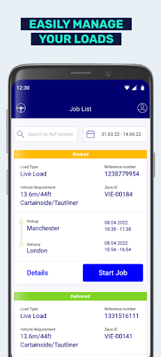 The Zeus Driver app is our free fleet management app that ensures hauliers can keep track of all their deliveries whilst on the road. GPS enabled, web-updated, the app gives you details of pickup location, full address details, cargo details, stay on top of your other drivers & vehicles, and an easy way to upload PODs (Proof of Deliveries) and get paid quickly!