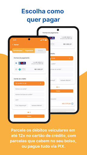 Além dos débitos veiculares, você também pode parcelar seus boletos em até 12x no cartão, organizando sua vida financeira e evitando que seu nome entre para os serviços de proteção ao crédito.