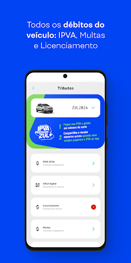 Pague seu IPVA com facilidade e segurança com o Zul+! Escolha entre boleto, pix ou em até 12x no cartão de crédito. Aqui, você pode consultar e pagar o IPVA dos estados de SP, RJ, SC, MG, PR, RS, BA, CE, PE, ES e muito mais.