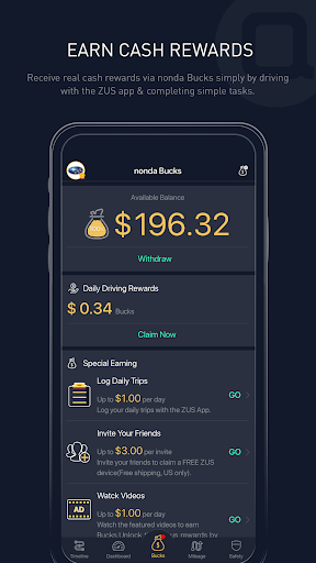 – Receive real cash rewards via nonda Bucks simply by driving with the ZUS app.