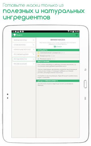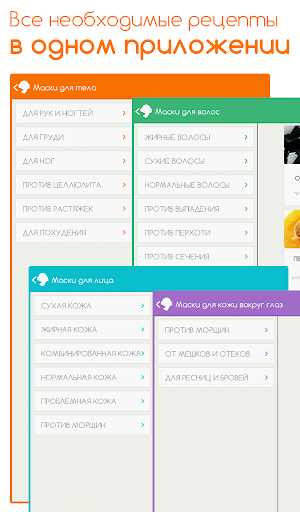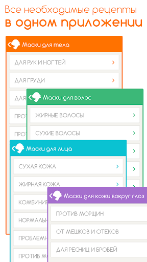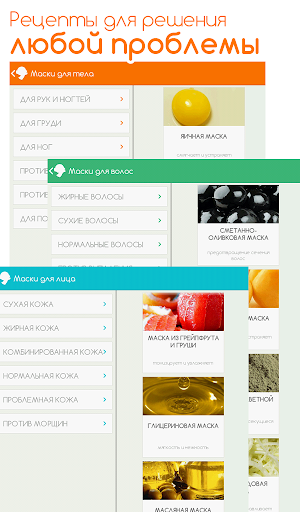 Все ингредиенты, элементы приготовления и нанесения в наших рецептах подобраны исключительно с точки зрения максимальной пользы для определенных типов кожи, волос, а также для самых распространенных проблем современной девушки. Состав каждой маски содержит только натуральные ингредиенты, достать которые вы сможете прямо у себя из холодильника или в овощном магазине.