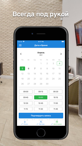 Используя мобильное приложение вы сможете легко записаться на нужную услугу к любимому мастеру, всего в несколько движений.