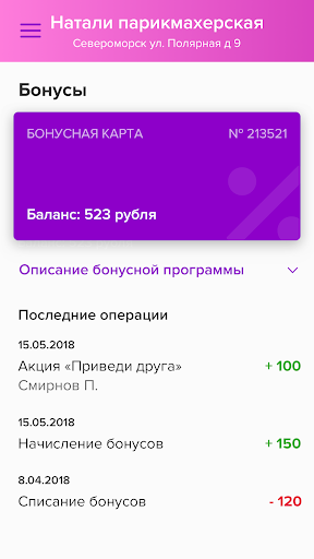 – Личный кабинет с историей всех предыдущих и будущих визитов, а также любимых услуг