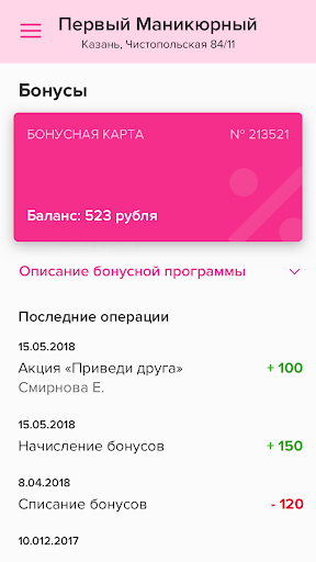 – Бонусы, их количество, и история начисления и списания