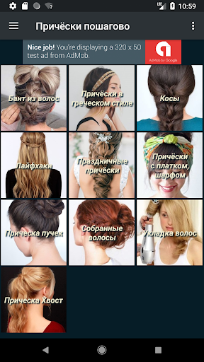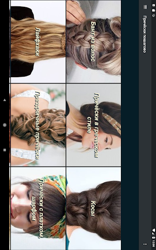 В приложении представлено множество идей для причесок. Идеи отсортированы по тематикам согласно стилям причёсок.