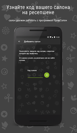 Чтобы начать пользоваться приложением, уточните код салона на ресепшене или на сайте салона, введите его на первом экране приложения, и вы сразу увидите информацию о вашем салоне и сможете записаться онлайн.