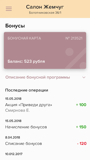– Личный кабинет с историей всех предыдущих и будущих визитов, а также любимых услуг