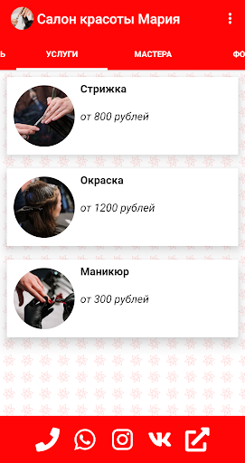 Это приложение демонстрирует, какой функционал можно разработать для салона красоты при помощи сервиса по созданию приложение GiveMeApp. Хотите такое же приложение? Заходите в сервис GiveMeApp и создайте свое приложение с помощью удобного конструтора бесплатно!