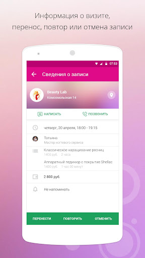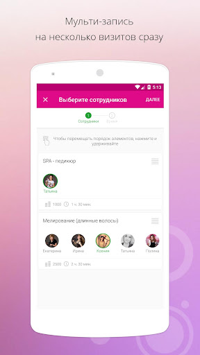 – легко и просто записаться к любимому мастеру, выбрать удобное время для посещения. Запись возможно на несколько визитов сразу;