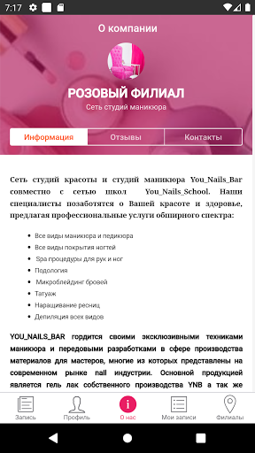 Сеть студий маникюра и педикюра You_Nails_Bar совместно со студией красоты You_Beauty_Bar и школой маникюра You_Nails_School. Наши специалисты позаботятся о Вашей красоте и здоровье, предлагая профессиональные услуги обширного спектра