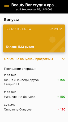 – Личный кабинет с историей всех предыдущих и будущих визитов, а также любимых услуг