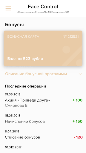 – Личный кабинет с историей всех предыдущих и будущих визитов, а также любимых услуг