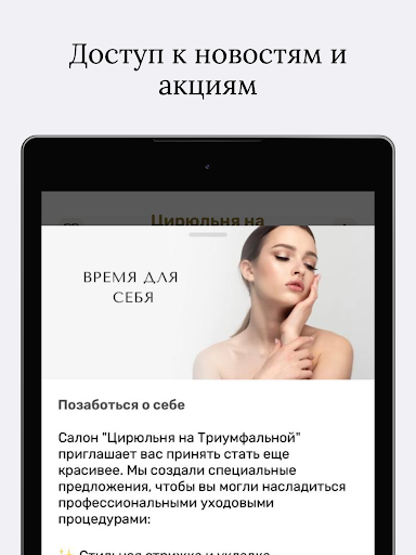 Наше мобильное приложение для Вас – это Ваш личный кабинет в салоне красоты, Вы сможете записаться в нас салон в режиме online (в любое удобное для вас время), будите в курсе событий салона (новости/акции).