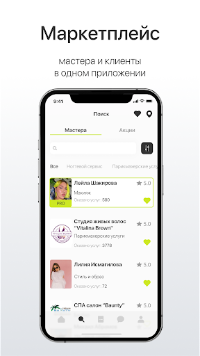Мастер увидит имя клиента, время процедуры и описание с важными пометками. Каждый клиент может найти любого мастера красоты, будь то парикмахер рядом, мастер по эпиляции или мастер по маникюру, выбрав нужную специализацию и местонахождение, и далее зарезервировать в расписании свободное время для выбранной процедуры.