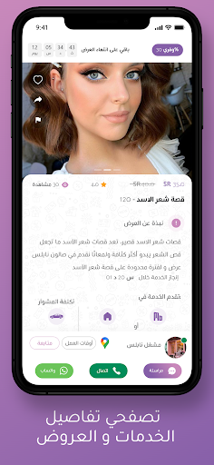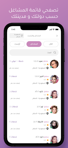 هذا التطبيق يمكنك من خلاله اختيار أحسن صالونات التجميل اللي تقدم عروض توفيرية مع نخبة من الأخصائيات والميك اب ارتست تطبيق صالونات لطيف وخفيف ويساعدك في الظهور ب اجمل مظهر اذا كنت تريدين الحصول على اجمل التسريحات والمكياج وغيرها من ما توفره الصالونات فما عليك سوى بتحميل هذا التطبيق الوسيط