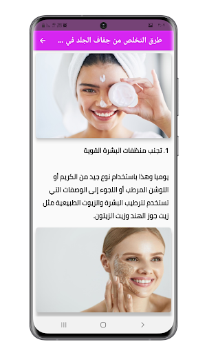 – يقدم هذا التطبيق موسوعة كبيرة لجميع طرق واساليب العناية بالبشرة وصحتها تقدم بشكل مريح وسلس للمستخدم, ويحتوي الموضوع على صور توضيحية.