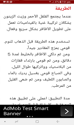 يحتوى التطبيق على الخلطات الطبيعية الغنية بالفيتامينات والزيوت والعديد من الوصفات المنزلية التى تساعد المرأة وكل البنات على تطويل الاظافر وتقويتها وعلاج هشاشة الظفر وتكسره ويتميز التطبيق بالبحث عن الوصفات واضافتها للمفضلة لسهولة الرجوع اليها ويمكنك ايضأ مشاركة الوصفات