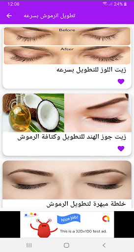– يتميز التطبيق بمشاركة الوصفات لكى تشاركيها مع اصدقائك وكل امرأة تحلم برموش طويلة طبيعية
