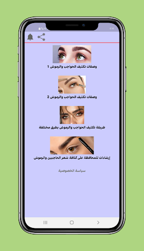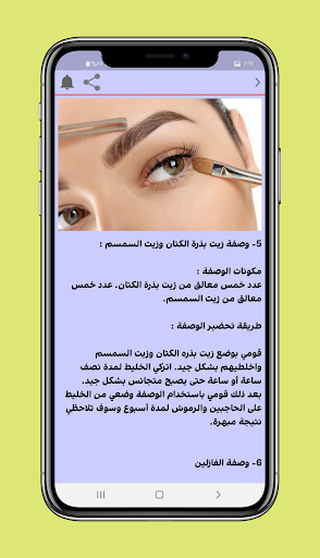 تطبيق مجاني يحتوي على طرق تكثيف الحواجب بالقرنفل ، وصفات تكثيف الحواجب بالثوم ، وصفات منزلية وتجميلية وصفات تكثيف الحواجب في يومين ، وكذلك تقنيات إطالة الرموش وطرق إطالة الحواجب.