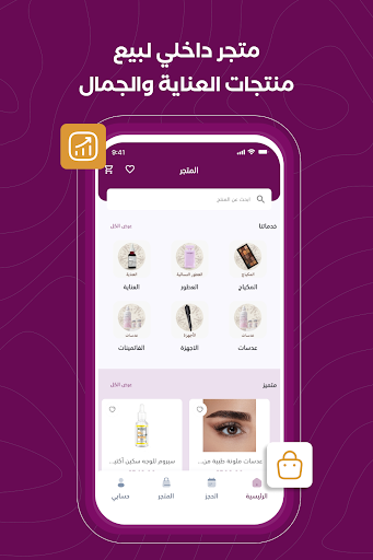 – **متجر داخلي للمنتجات:** زيادة مبيعاتك بإدراج منتجات العناية الشخصية والجمال داخل التطبيق ليتمكن عملائك من شرائها مباشرةً.
