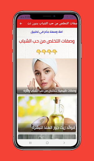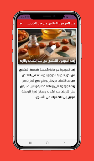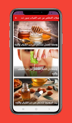 يحتوي التطبيق على عدة وصفات طبيعية تهتم بإزالة حب الشباب ومتجددة بستمرار و هذه بعضها :