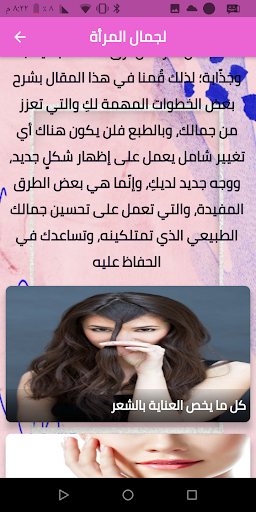 لجمال المرأة هو تطبيق مميز يحتوي على كل شيء له علاقة باظهار جمال المرأه واهتمامها بنفسها .
