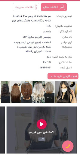 – مشاهده شماره تماس ، لینک تلگرام و واتساپ جهت چت ، کانال و پیج اینستاگرام آرایشگر