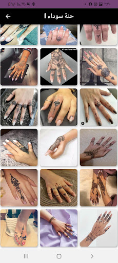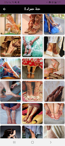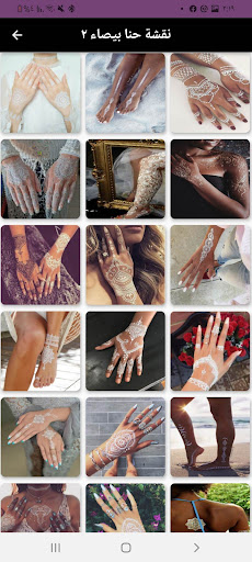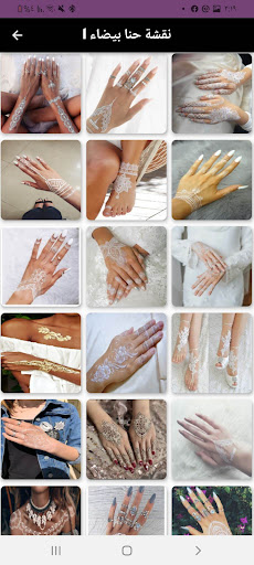تطبيق نقشة حنا يحتوي على العديد من صور حناء جميلة وعصرية ومجموعة من نقشات حنا باللون الاحمر ونقشة حنا باللون الاسود ونقشة حنا بيضاء