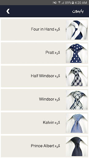 تعدادی از روش های گره زدن کراوات و پاپیون که در این برنامه شما آنها را فرا میگیرید: