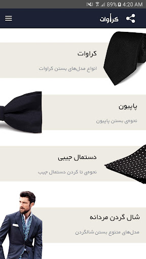 بیش از ۳۰ نوع روش بستن کراوات ، پاپیون ، شالگردن و دستمال جیب کت شلوار ، شاید تعجب کنید ولی این برنامه رایگان است !