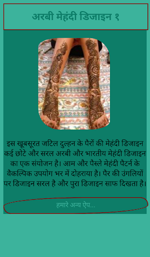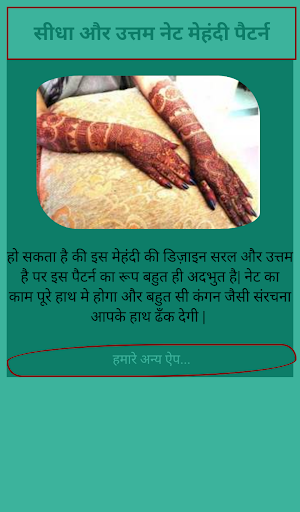 यह मेहंदी डिजाइन ऐप विशेष रूप से शादी मेहंदी डिजाइन छवि के लिए बनाया गया है। पाकिस्तानी और भारतीय लड़कियों को इन मेंहदी मेहंदी से प्यार है, जो मुफ्त में चित्र बनाती हैं। मेहंदी डिज़ाइन एक नए ऐप में मुफ्त डाउनलोड के लिए अरब मेहंदी कलाकारों के आसान और सरल डिज़ाइन हैं। अपने वर्चुअल मेहंदी वॉलपेपर बनाएं।
