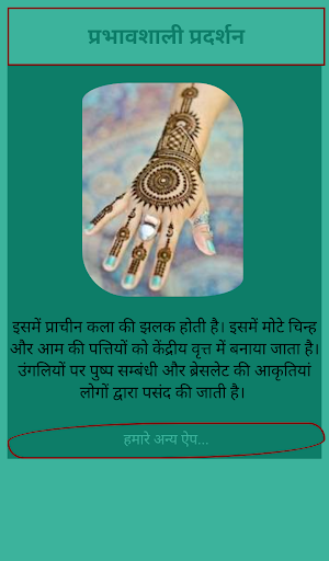 यदि आप शादियों में अन्य लड़कियों से अलग दिखने के लिए नवीनतम हाथ मेहंदी डिजाइन कला की तलाश कर रहे हैं, तो पार्टी या दोस्तों के लिए इस मेहंदी डिजाइन मुफ्त ऐप को इकट्ठा करना सिर्फ आपके लिए है। हम मेहंदी डिजाइन वॉलपेपर संग्रह प्रदान कर रहे हैं।
