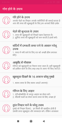 Ever wondered how you could get a glowing skin without going to an expensive beauty salon? we’ve rounded up our best get-gorgeous tip & tricks in one app. Use this app and Stay updated with natural beauty tips, homemade make up tips, homemade beauty tips from beauty experts and makeup artists. Beauty tips of beauty provides quality information on beauty for Tips, Facial Bleaching, Hairstyles, Homemade Face Pack, etc.