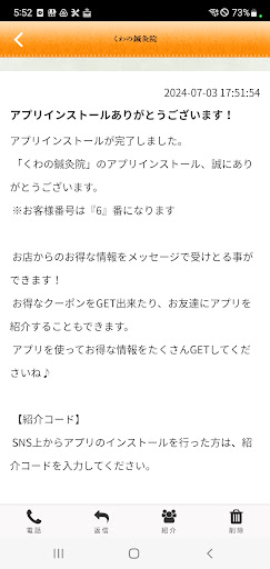・くわの鍼灸院のアプリをSNSを通じてお友達に紹介する事が出来ます。